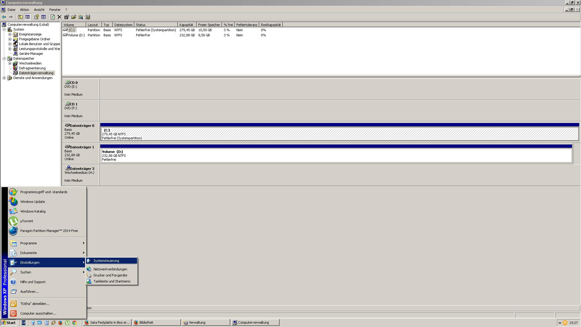 Bis jetzt lief alles ohne Probleme nur der Festplatten Speicher ist mir zu gering, deshalb habe ich mir eine Western Digital Blue 1TB gekauft. Diese wird im Bios angezeigt aber nicht in der Computerwerwaltung unter XP.