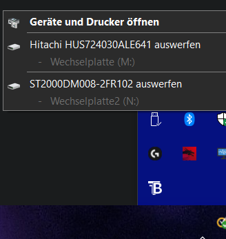 ich nutze seit Jahren ein Hot Swap Laufwerk, über das ich verschiedene HDDs bei Bedarf einstecke. Das erkennen funktioniert auch weiterhin sofort im Windows 10 Pro. Aber das Symbol zum sicheren entfernen ist verschwunden. Habe jetzt eine gute Stunde gegoogelt, aber nichts gefunden. Auch mein Mainboard bietet keine dezidierte Option dafür: