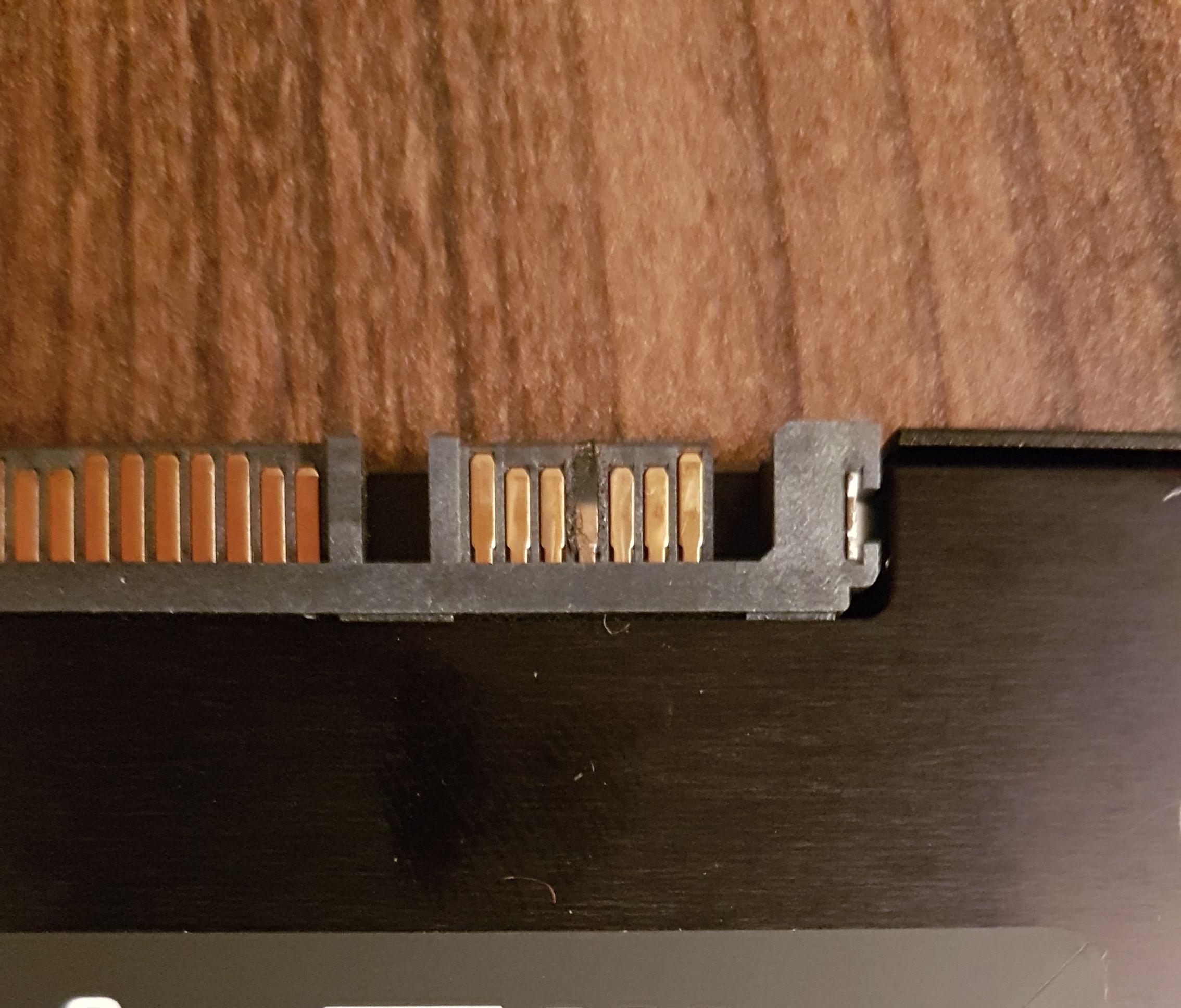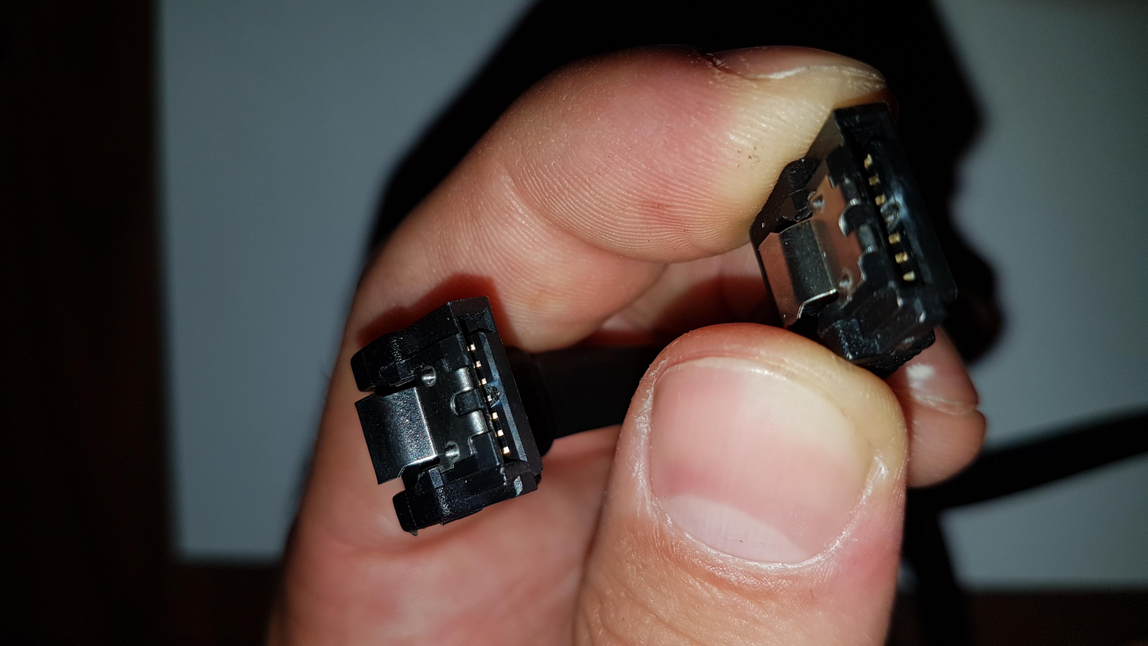 Aha das Sata Kabel zimlich durchgeschmort ... vieleicht ein Kabeldefekt... mist der Pin der SSD is mitabgebrannt ... mist und der Anschluss am Motherboard hat ebenfalls den Pin eingebüst.