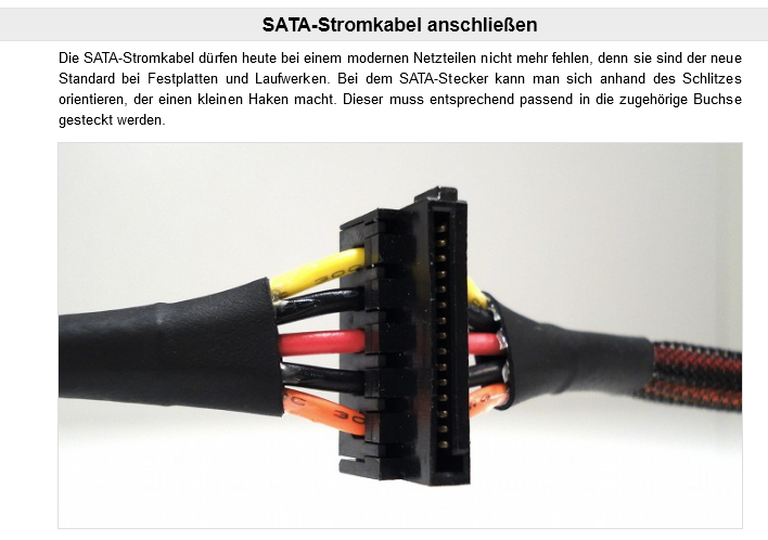 Nein, das was er zeigt, kommt von einem Verbraucher, nicht vom Netzteil. Daher muss dieses Ende an einen SATA-Stecker des Netzteils (oder eben per SATA-Molex-Adapter) rein.Drewkev schrieb:Das was du hier zeigst kommt vom Netzteil und wird in die Festplatte gesteckt, nicht ans Mainboard, da es Strom liefert.