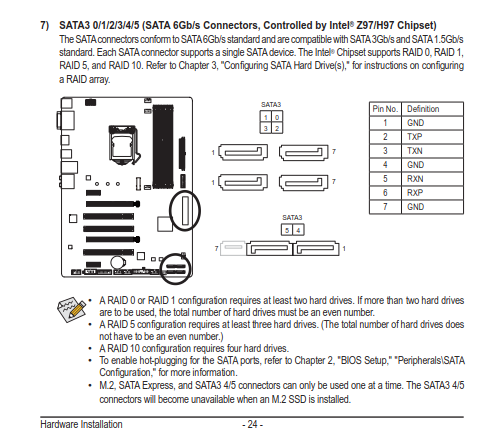 Ich habe eine GA-H97-D3H MB und die hat nur 4 Sata Anschlüsse http://www.gigabyte.com/fileupload/product/2/4962/10178_big.png