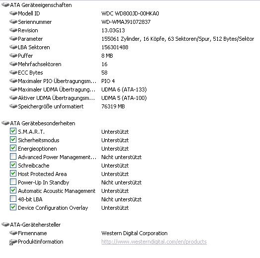 Im Bios wird die HD als Dritte IDE erkannt und der DMA Modus steht auf Auto (ohne auto nur max UDMA-5)