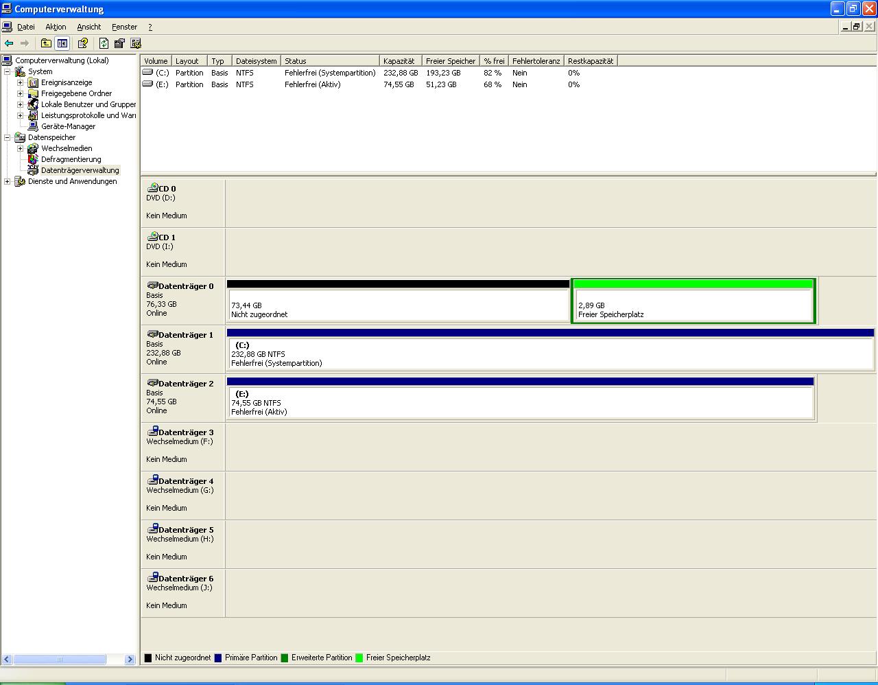 habe ein problem, dass meine zweite sata platte in windows zwar erkannt wird und auch in der festplattenübersicht auftaucht, aber der festplatte wird kein laufwerksbauchstabe zugeordnet und demzufolge kann ich auf die platte nicht zugreifen!