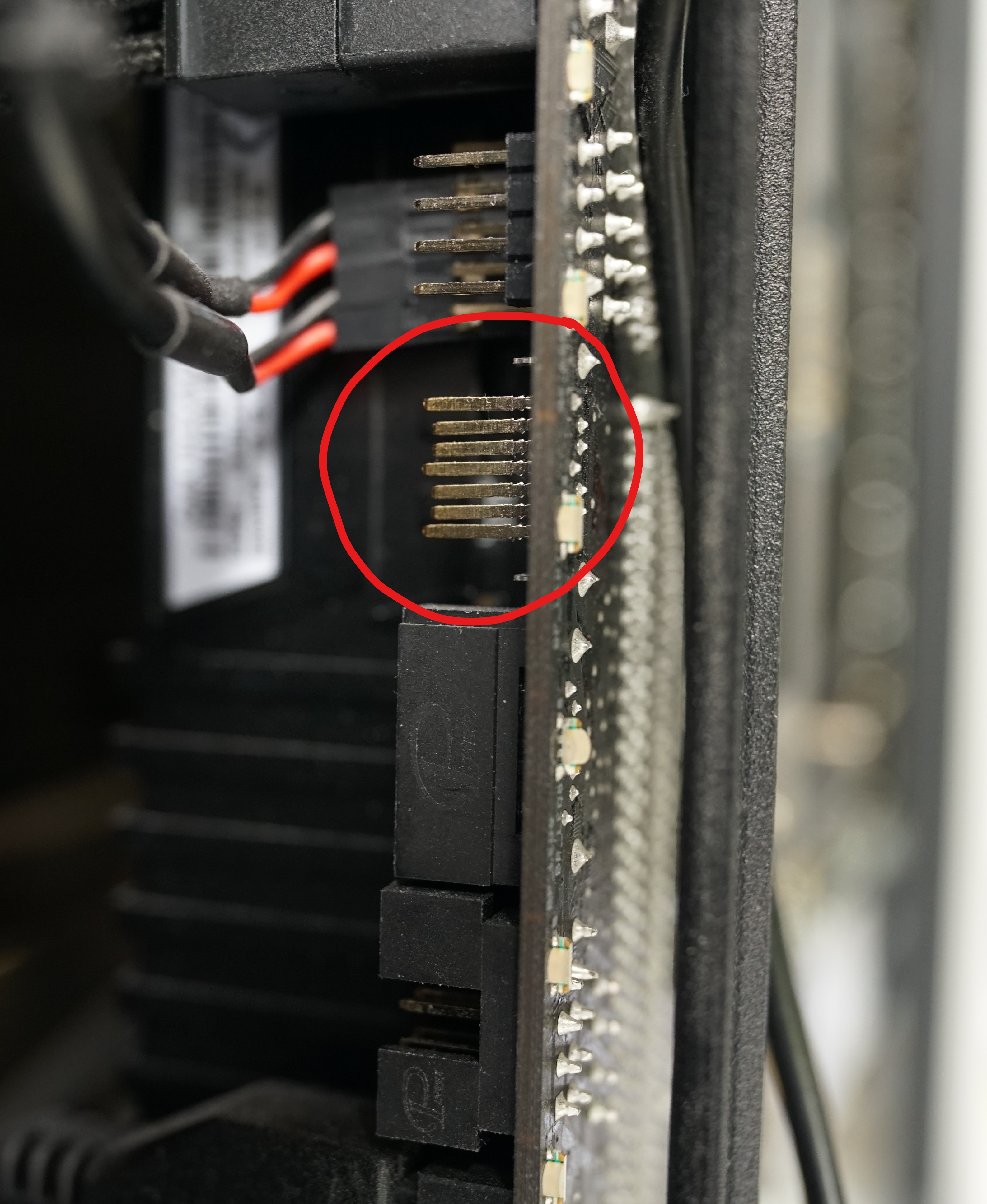 So nun zu meiner Problematik. Beim sauber machen meines Itx Pcs habe ich festgestellt, dass die Plastik Ummantelung eines Sata Ports auf meinem Mainboard fehlt, die Pins sind aber alle noch vorhanden und nur sehr leicht verbogen. Ich vermute, dass der Stecker mit dem Sata Kabel abgegangen ist als ich auf eine Pcie ssd umgestiegen bin.