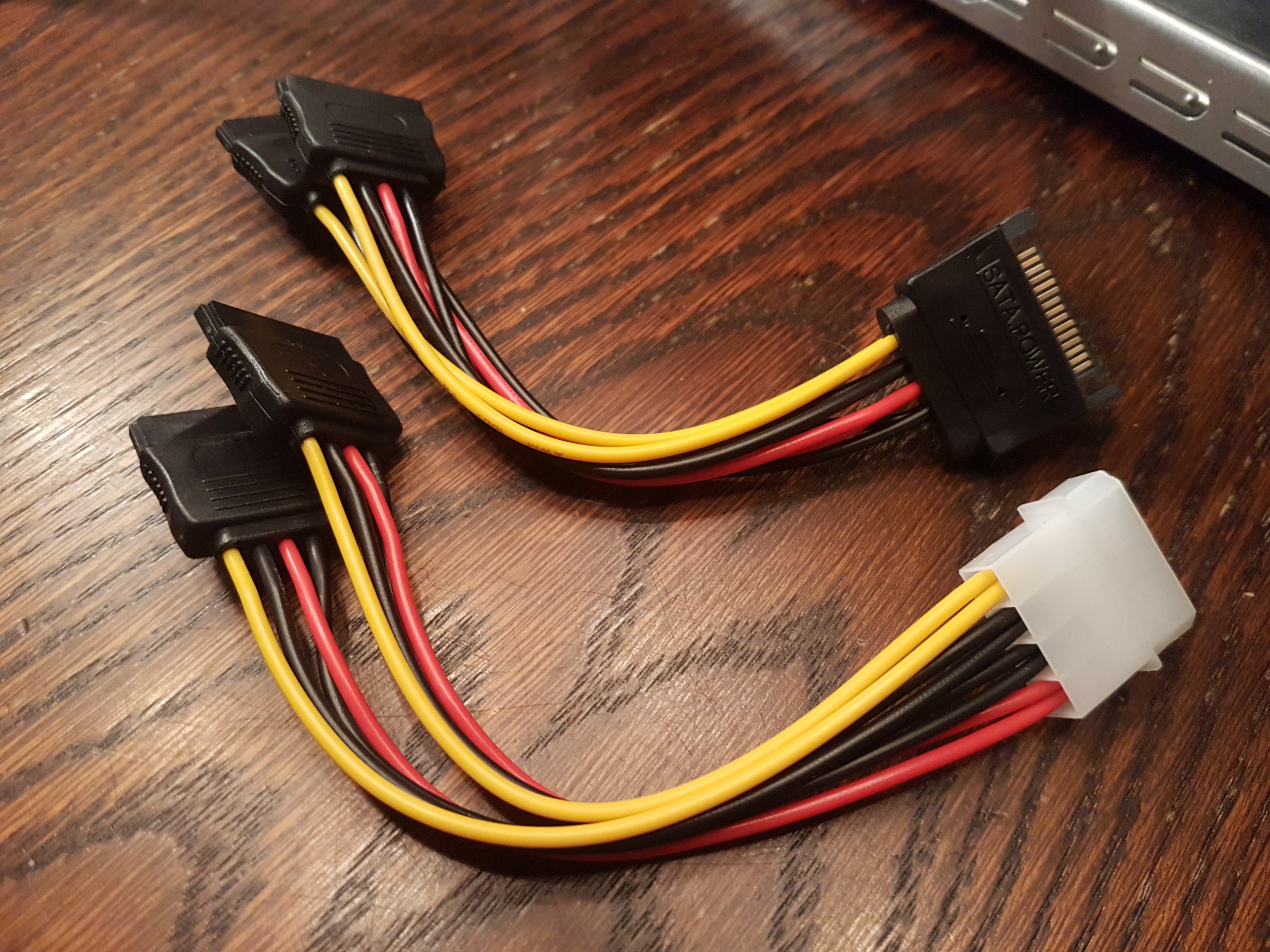 Ich dachte, ich kann sozusagen an ein freies vorhandes SATA Strom Kabel sozusagen einen Splitter draufstecken, und habe damit, tadaa mehrere freie Kabel..