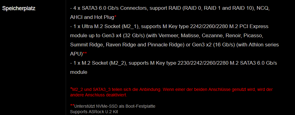 Das B450 Pro4 hat übrigens einen zweiten M2 Slot, in dem man auch eine NVMe SSD stecken könnte, die allerdings nur mir 2 Lanes angebunden würde.
