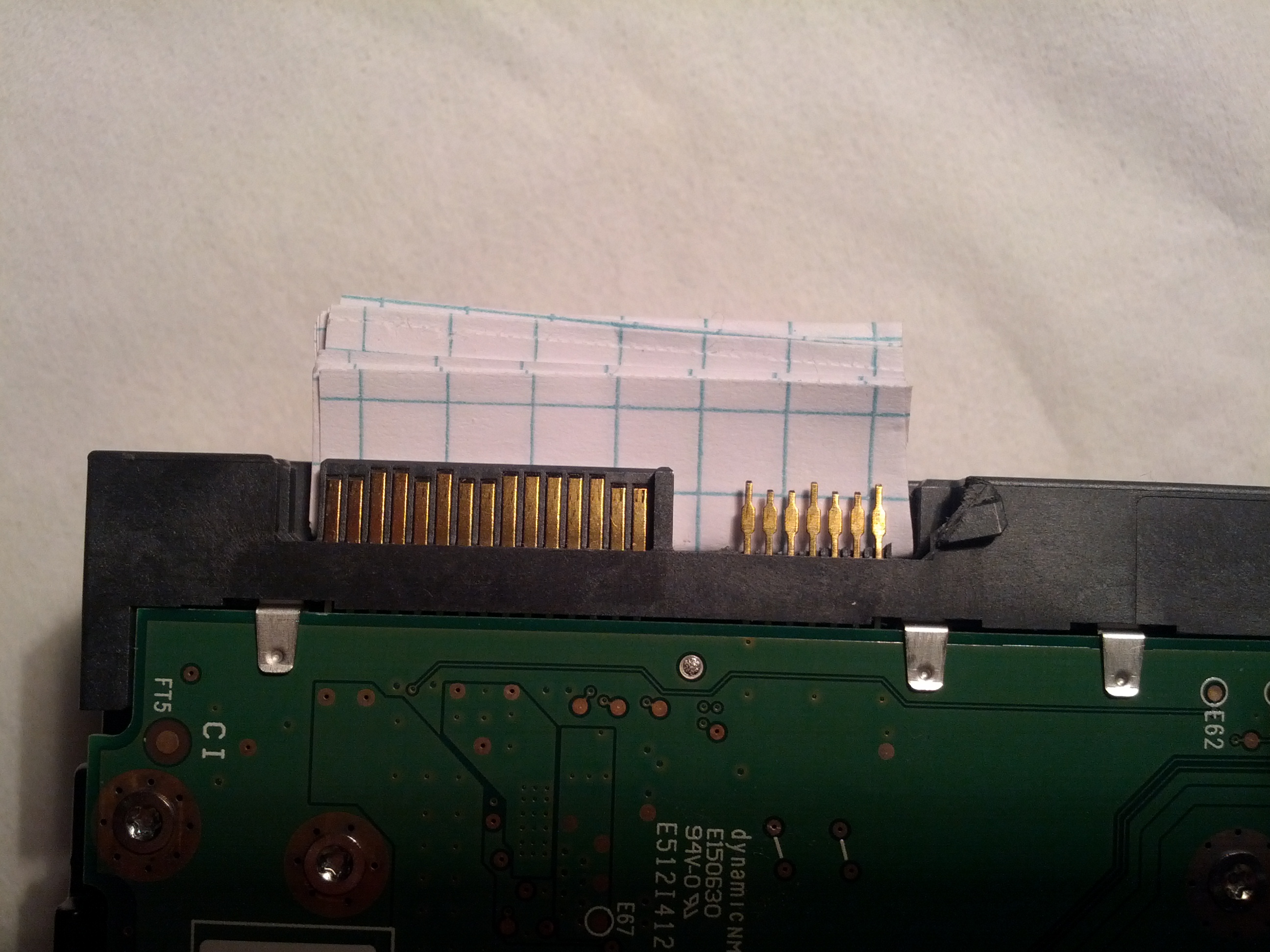 - Einen Notizzettel mehrmals zusammengefaltet und unter den linken Anschluss geschoben. Durch den noch vorhandenen Anschluss konnte ich mich orientieren, welche Dicke der zusammengefaltete Notizzettel haben sollte.