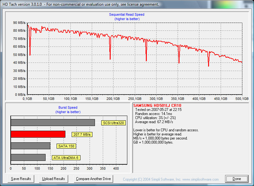 Deine Theorie, dass der größere Cache mit diesen Ergebnissen was zu tun haben könnte, kann nicht zutreffen, da beim sequenziellen Lesen der Cache rein gar nichts zu tun hat.