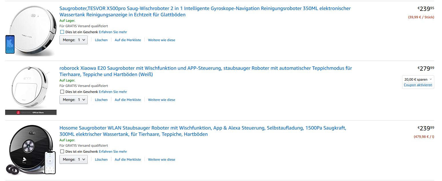 Ich suche zurzeit einen Saugroboter mit Wischfunktion. Ich will es in 2 Zimmer mit Laminatboden verwenden. Die Räume sind recht klein(etwa 4-5m²). Ich kann etwa 200€ ausgeben. Falls es sich wirklich lohnt, kann ich etwas drauflegen. Ich habe den ZACO V5sPro im Auge sowie den MEDION MD 18379.