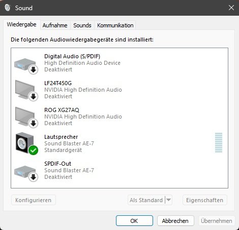 Ich benutze eine Soundkarte von Soundblaster AE-7.