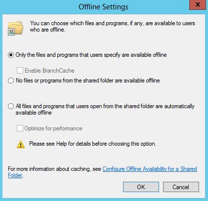Die Synchronisation selbst klappt aber die "Offline"-Share befindlichen Dateien können nicht "offline verfügbar machen" deselektiert werden, die Option ist ausgegraut.