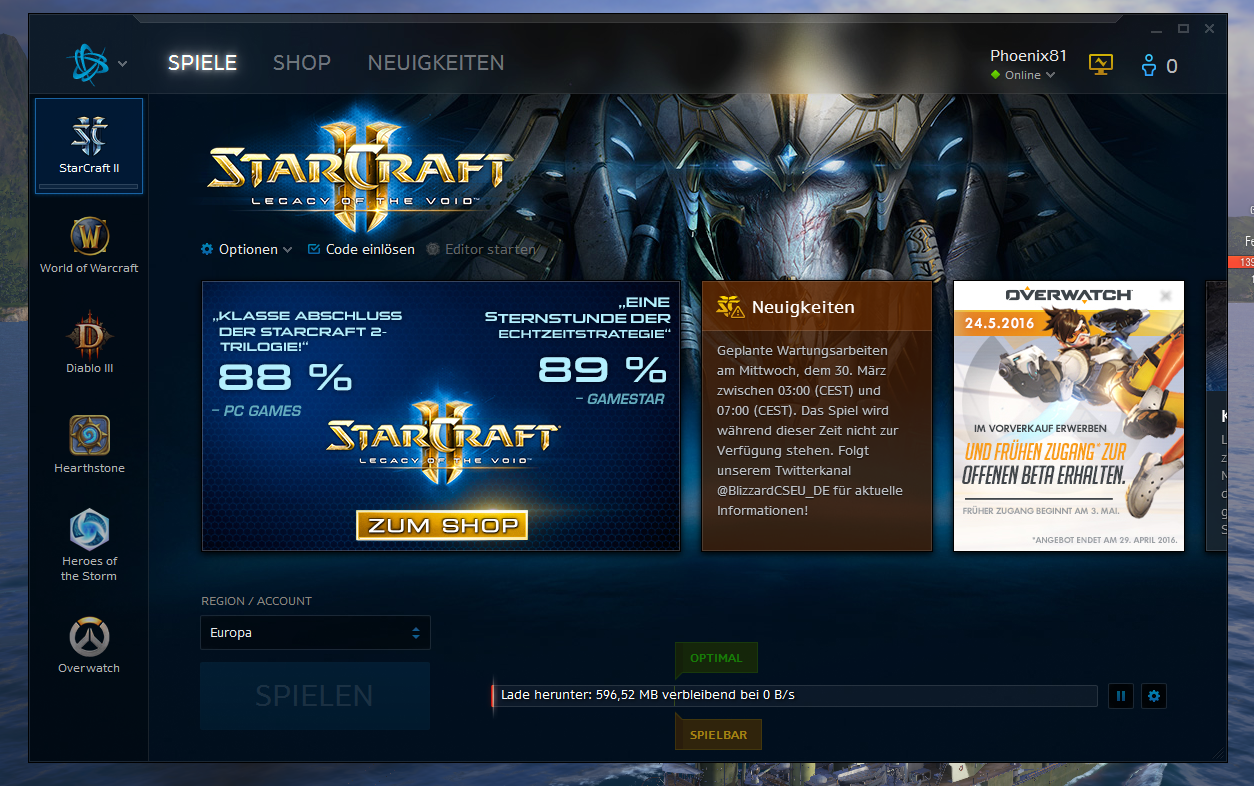 SC II Spielen Button in Battel.net ausgegraut nach Kauf von Erweiterung