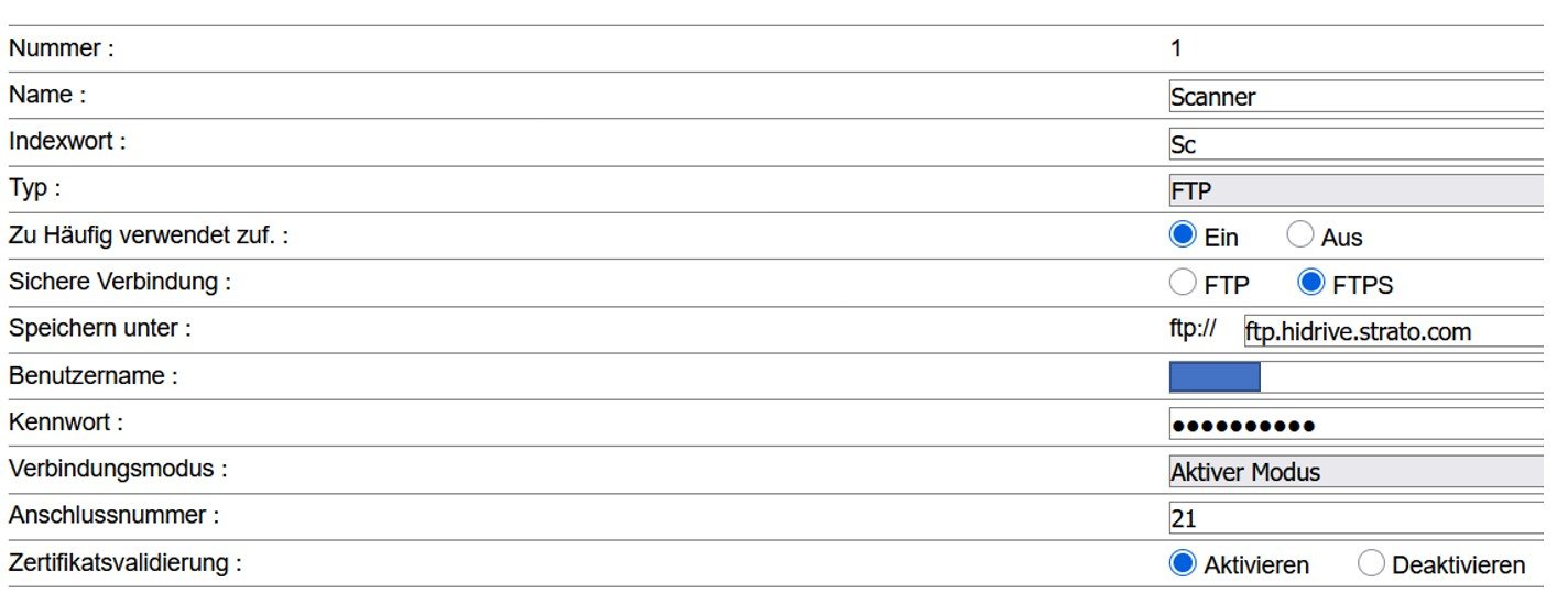 Du kannst aber den Scanner auf FTPS und als Ziel ftp.hidrive.strato.com, Port 21 einstellen.