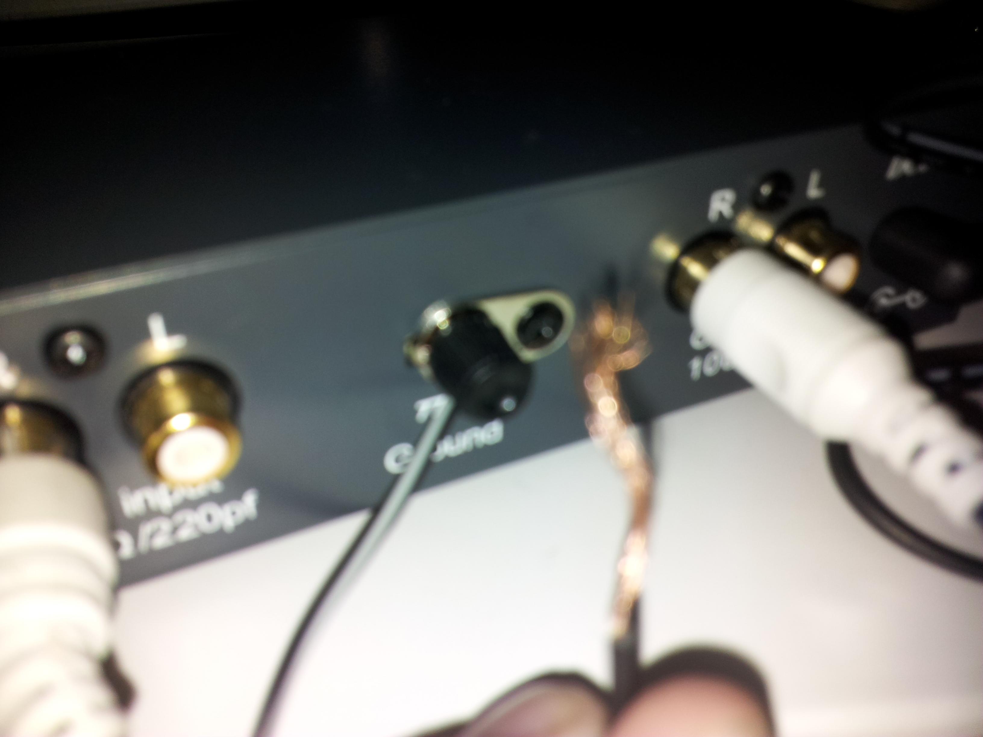 Gleichfalls habe ich die Masse Leitung vom Schallplattenspieler mit dem Ground vom Vorverstärker verbunden. (1 Teil der Leitung/Oder zwei macht kein unterschied, weiß nicht was richtig ist auch im Foto zu sehen)