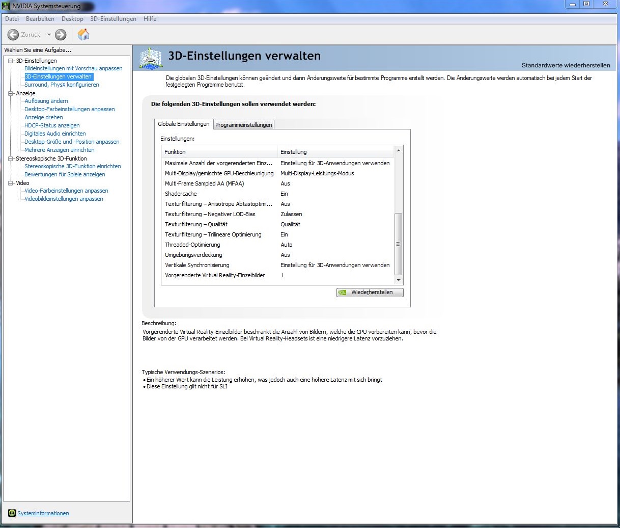 vllt weiß jemand die richtigen Nvidia Systemsteuerung Einstellungen und kann mir da weiterhelfen