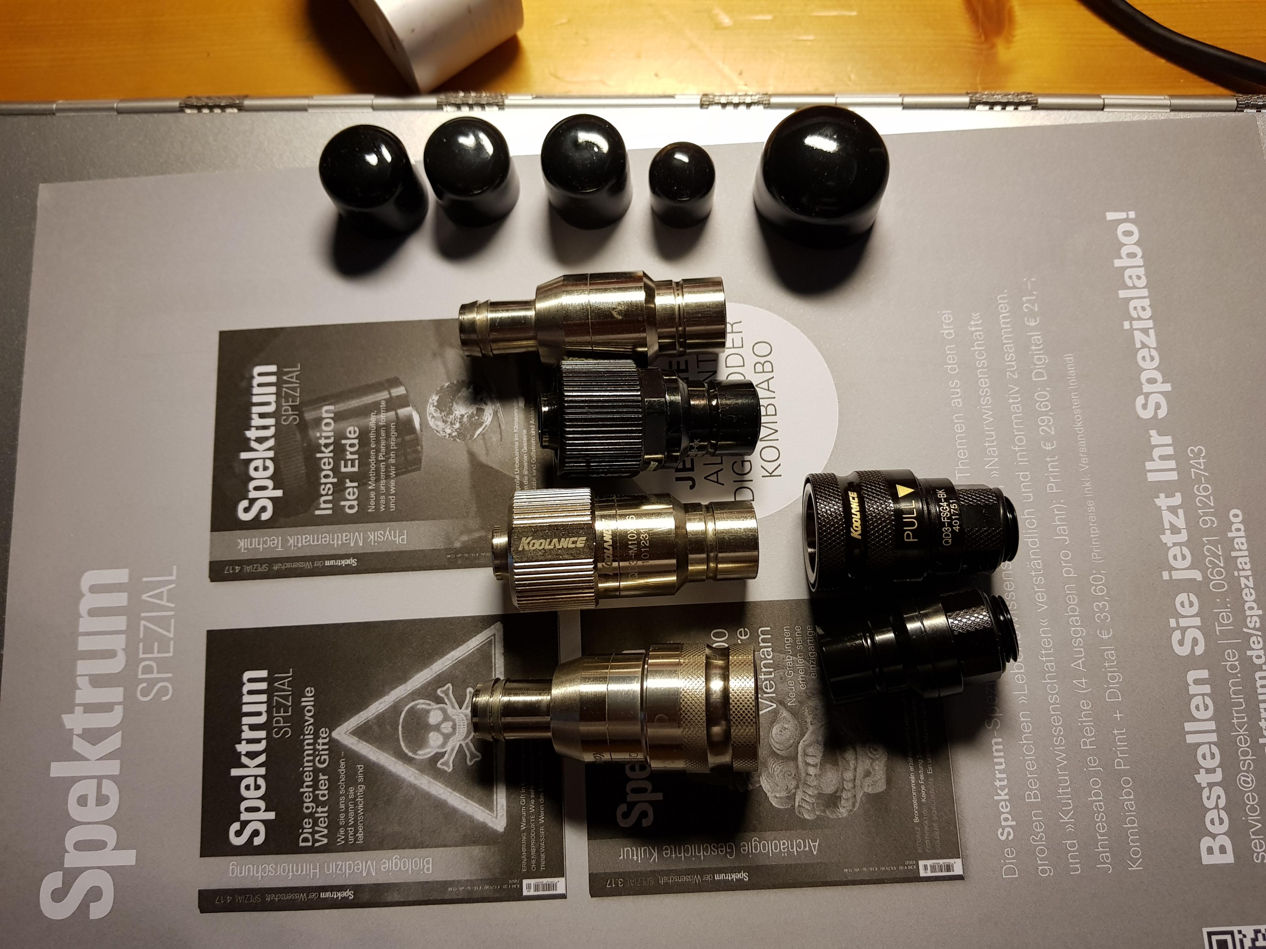 Das mit den Undichtigkeiten betrifft nur die Schnelltrennkupplungen vom Typ QD3 beim Trennen. Im Betrieb sind die dicht und halten. Ich glaube aber, das sämtliche Schnelltrennkupplungen mit analogem Aufbau ähnliche Probleme haben. Die Demontage eines defekten Anschlusses hat mir keine Erkenntnisse gebracht.
