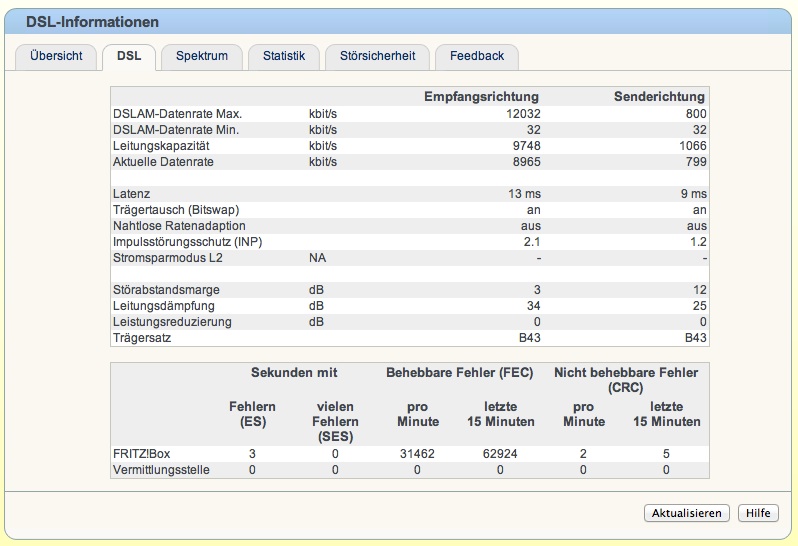Mmh... Das kann doch nicht normal sein, dass die Leitungsqualität Abends/Nachts so abnimmt? Ein Bekannter wohnt etwa 300m näher an dem Verteiler als ich und bei ihm synchronisiert sich seine 7270 mit 16000kbit/s problemlos und ohne Fehler... Auch nachts :/
