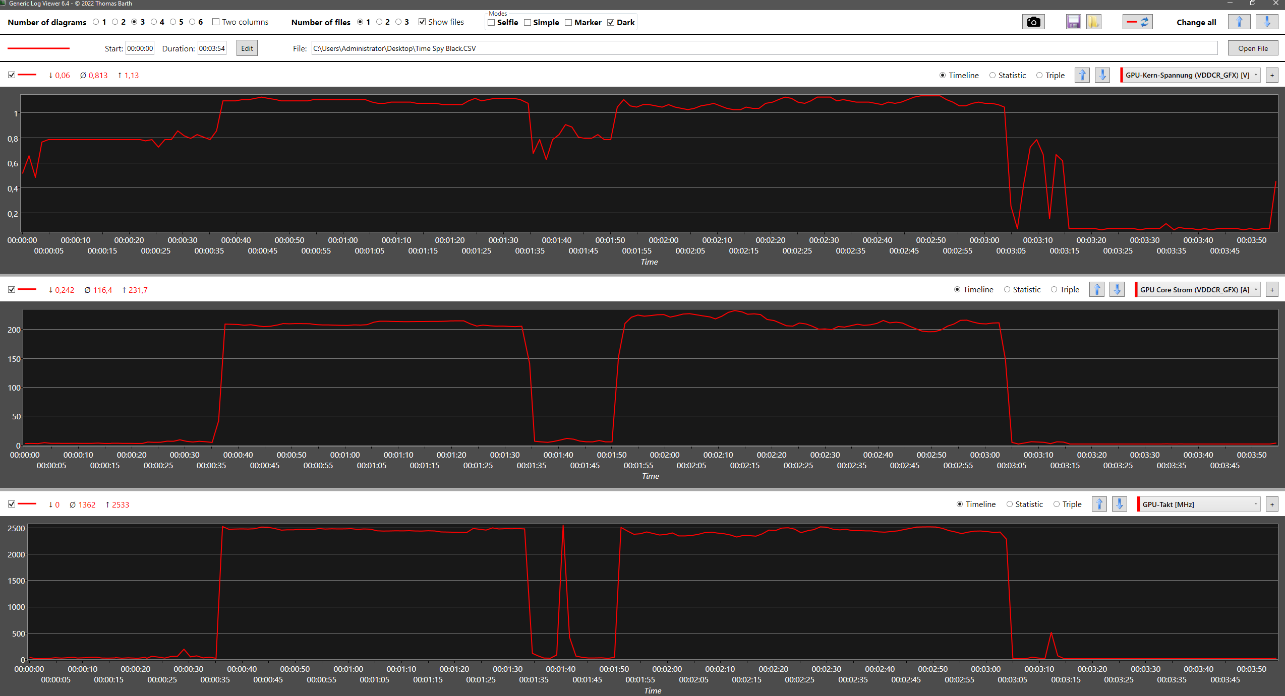 Ansonsten wäre mein nächster Vorschlag, die Grafikbenchmarkszene mal mit CapFrameX mitzumessen und zu schauen ob man in der Messung etwas sieht, oder auch das Overlay von Intel Presentmon mal mitlaufen zu lassen, um genauer zu checken ob die GPU konstant gut beliefert wird:
