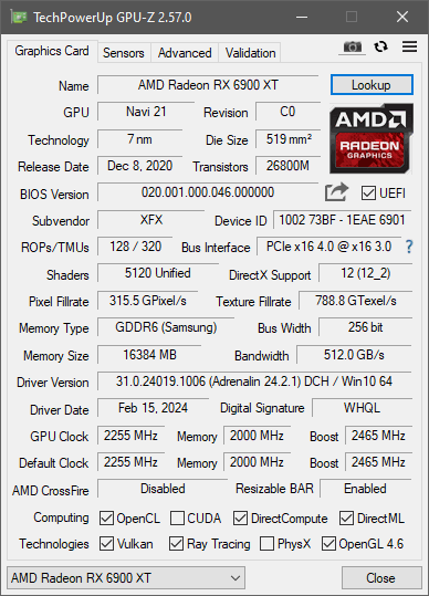 Bei dem Screenshot jetzt ist die Karte softwareseitig (Treibereinstellungen und BIOS, kein MPT aktiv,...) im Auslieferungszustand, hardwareseitig hat sie die Wasserkühlung darauf montiert?