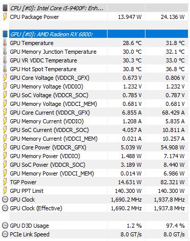 Die Max-Temperatuten in HW info sind niedrig genug, nicht nur Hotspot, sondern auch VRAM, also gehen wir davon aus, dass der WaKü-Umbau in dem Fall nicht das Problem für eine gegenüber Ausgangszustand reduzierte Leistung ist.