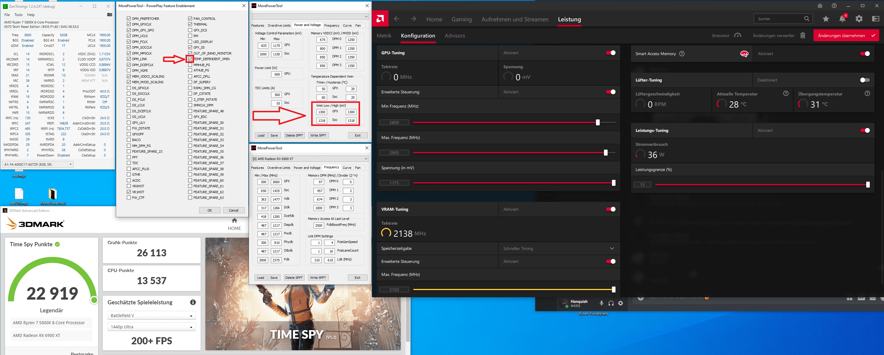 Das war sogar mit den Bios Daten einer wassergekühlten Red Devil, mit 332 PL. Habe allerdings den Takt bei 2489 belassen und die Spannung musste ich auf 1.175 V absenken, da es ansonsten einen Reset gegeben hätte.