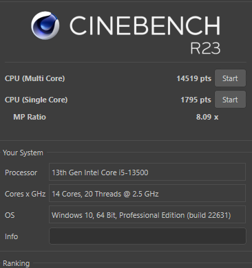 - Prozessor (CPU): I5 13500