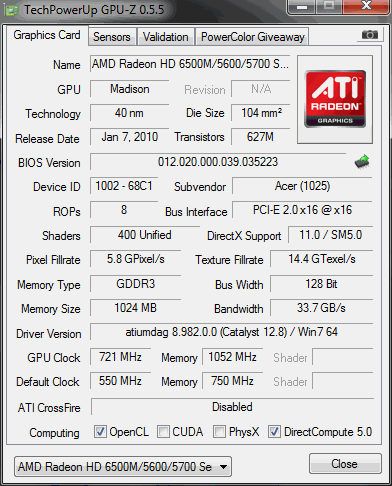 Grafikkarte: ATI Mobility Radeon HD 5400 Series (Treiber sind aktuell)