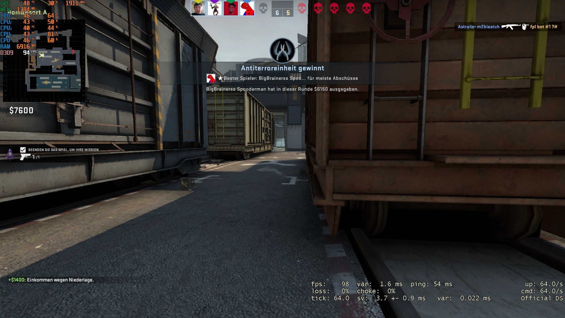 In CS:GO mit allen Einstellungen auf niedrig und einer Auflösung von 1980x1080 sind es durchschnittlich 100 FPS.