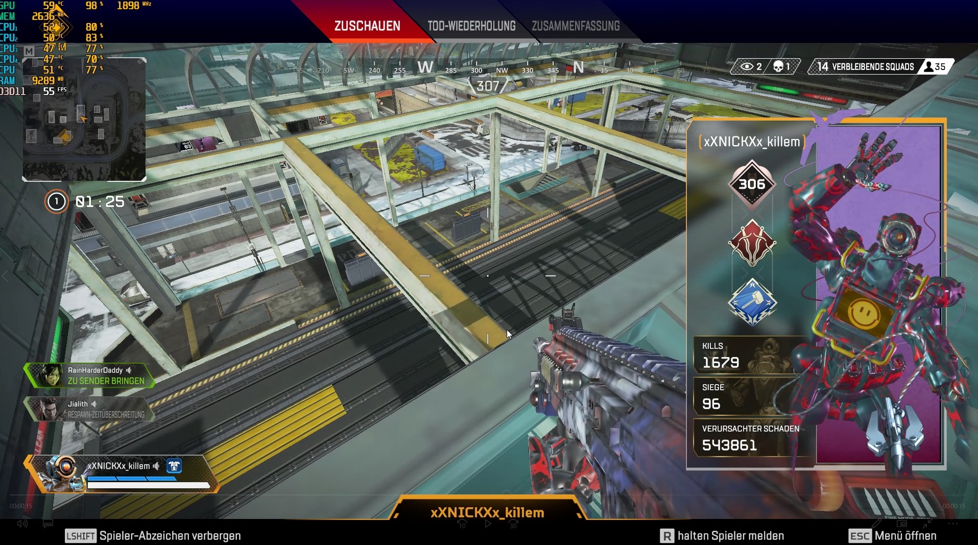 In Apex Legends mit allen Einstellungen auf niedrig und einer Auflösung von 1980x1080 sind es durchschnittlich 50 FPS.