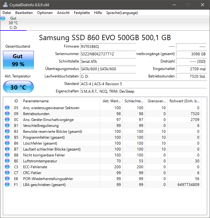 @John Statler interessant, meine 860 EVO 500GB liegt genau zwischen euren beiden