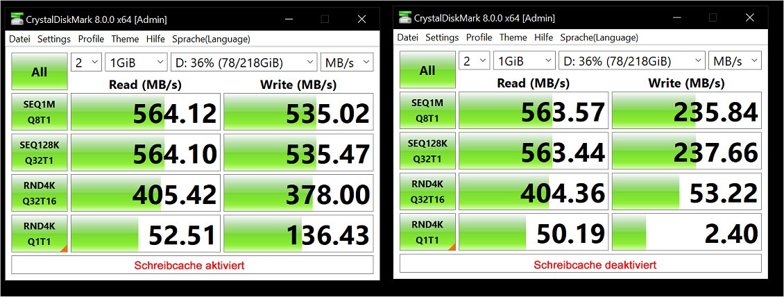 @John Statler das habe ich soeben gemacht, überall war bereits der Haken drin und der Schreibcache aktiviert.