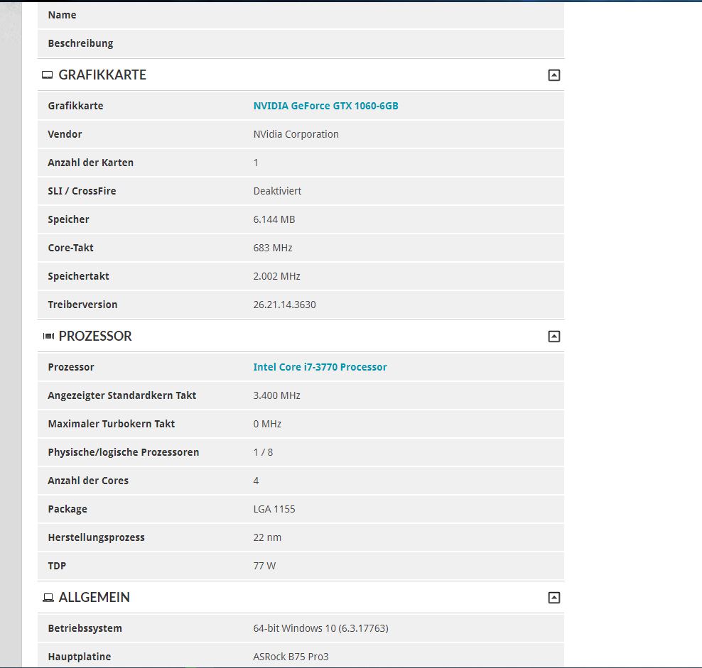 Jetzt zu meinem aktuellen Problem trotz normalen Takt der Cpu habe ich im Benchmark bei 3DMark schlechtere Werte als andere Tests mit gleicher Hardware.