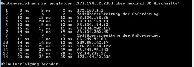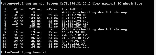 Im Anhang ist eine Trace Route, was mich daran wundert ist, dass beim 2ten Hop immer eine Zeitüberschreitung vorliegt.