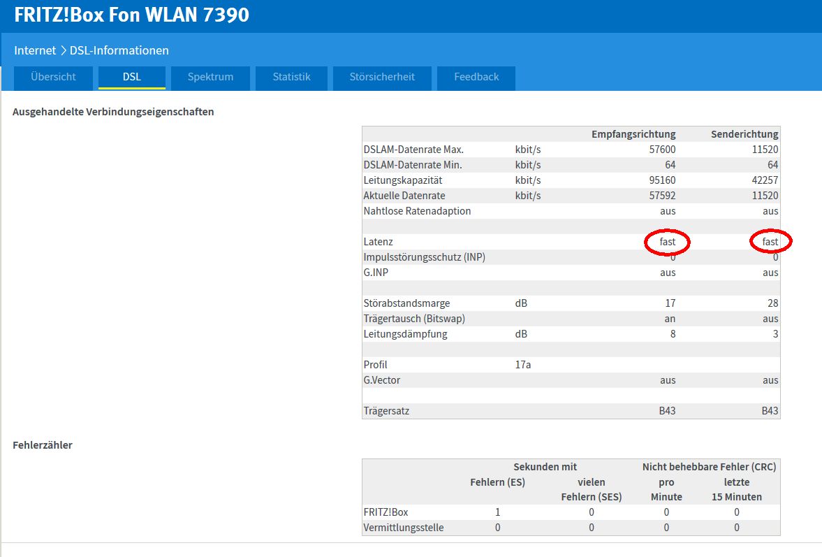 Ich schick hier mal die dsl infos von der Fritz box und ein tracert zu google.de mit vielleicht kann jemand mit mehr Ahnung als ich mir einen Tipp geben, woran das liegt und was ich machen könnte.