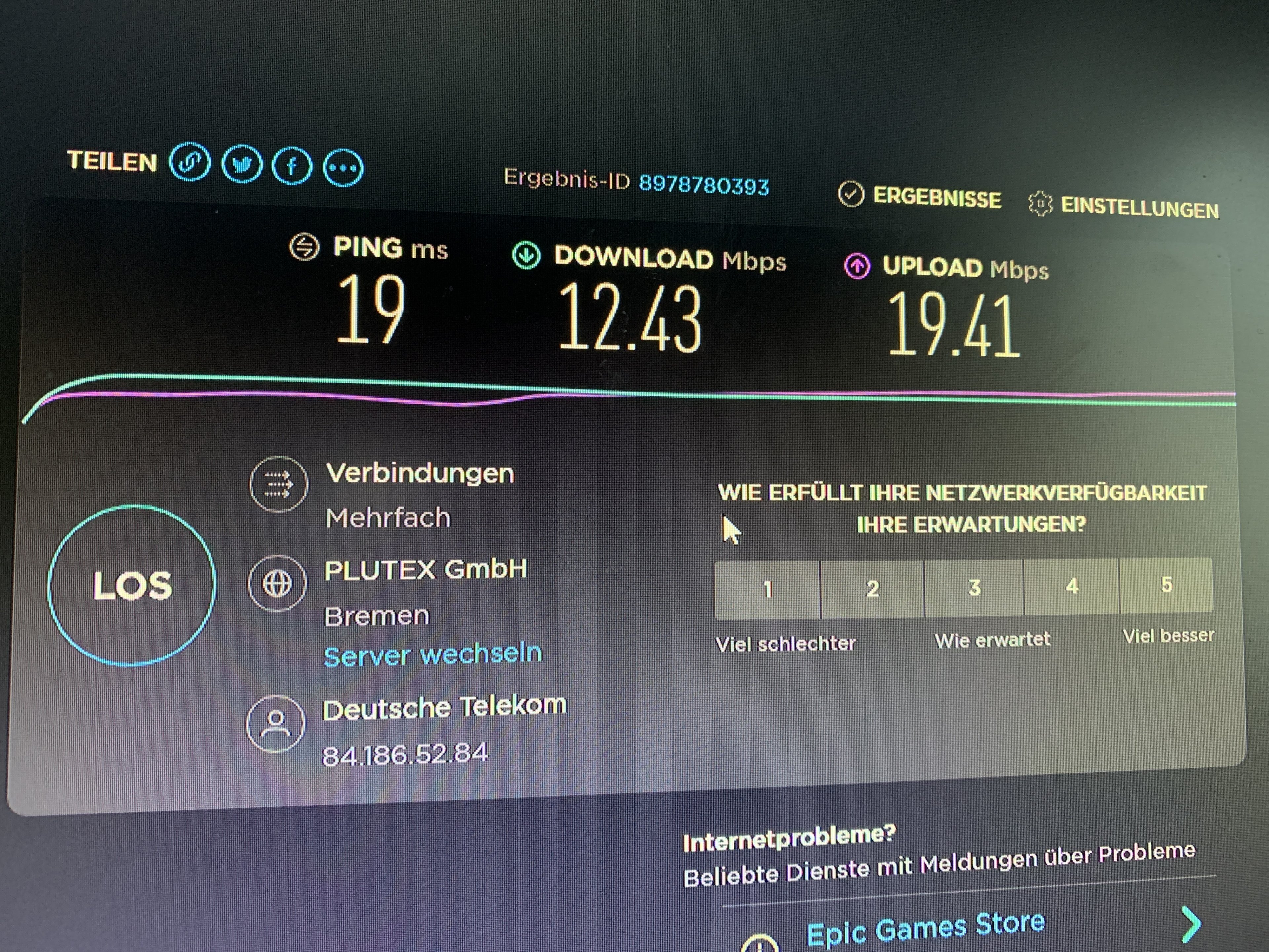 Mein Pc läuft auf win10 und ist per usb dongle mit dem wifi verbunden. Eine Lan Leitung zu legen ist nur kit Elektriker möglich wegen den Etagen in unserem Haus. Alle Wlan geräte bekommen mehr internet als mein pc oben.