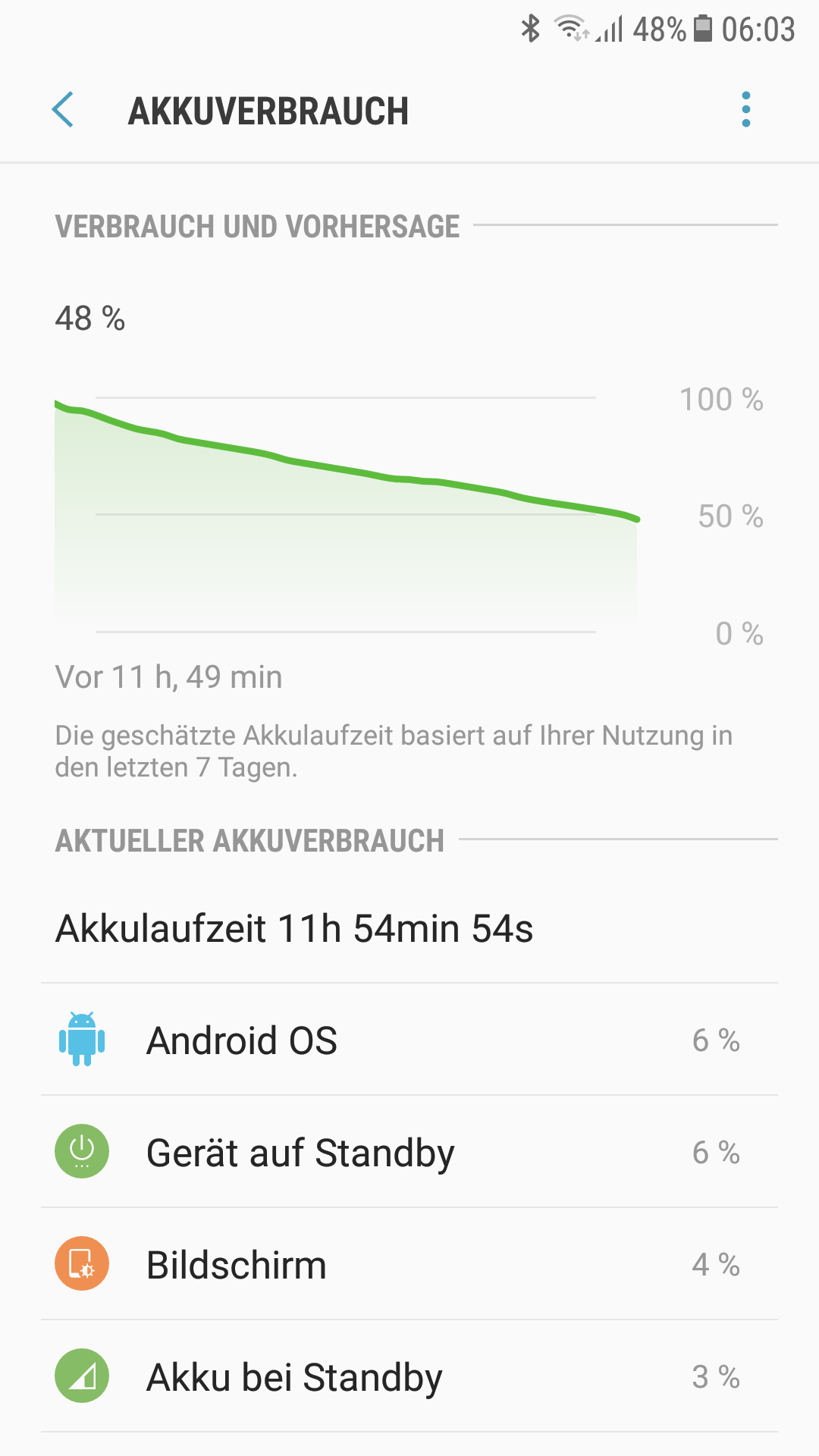 Keine 12 Std später und mit 8Std Nachtschlaf dazwischen, hat der Akku am heutigen Morgen nur noch 47%.