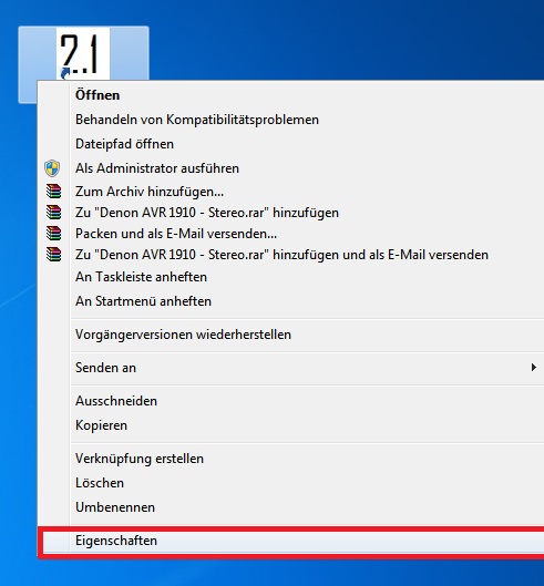 Um nun eine Tastenkombination für ein Profil zu erstellen, wählt man rechte Maustaste --> Einstellungen auf die Verknüpfung: