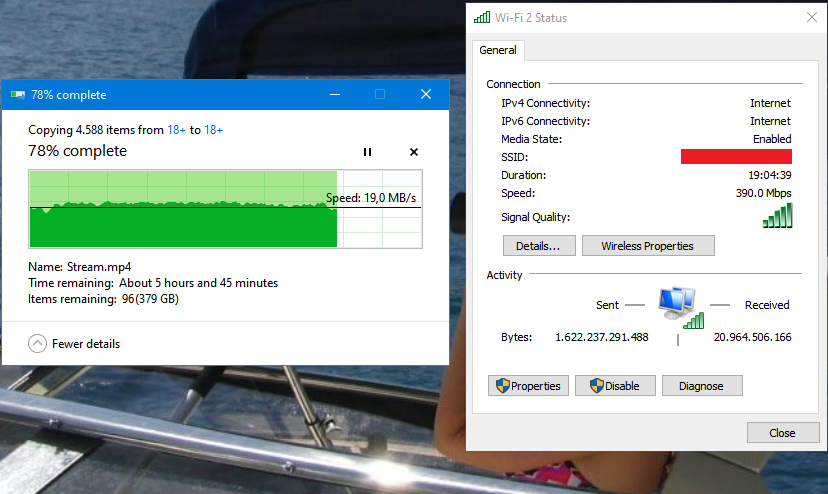 Beim kopieren von Daten, große Dateien ab 2GB aufwärts, über das WLAN auf mein NAS komme ich auf max. 20MB/s.