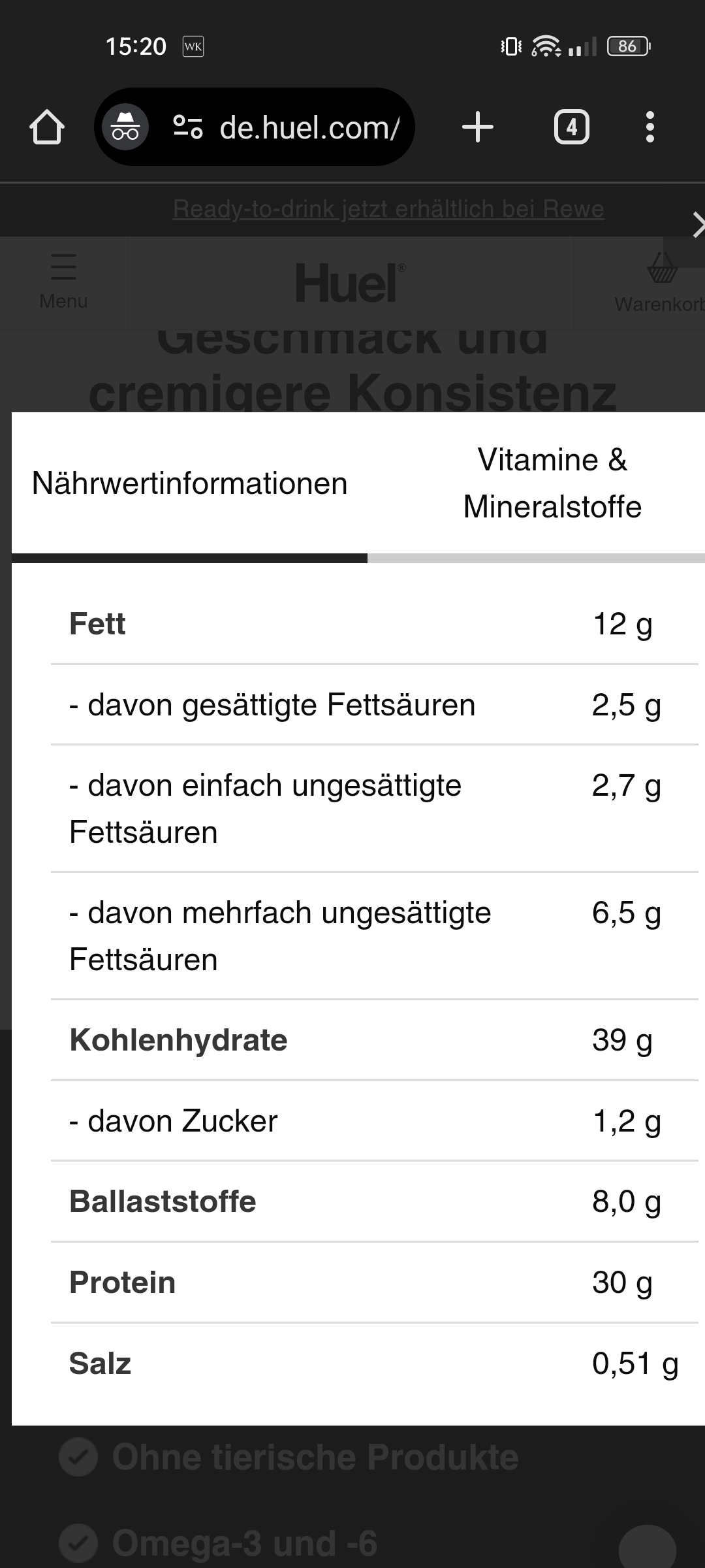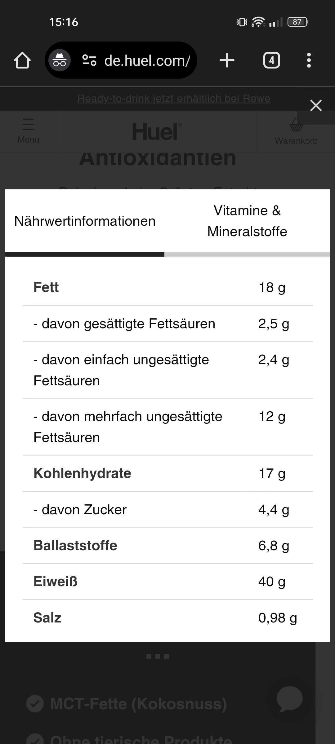 Ich nehme seit einiger Zeit Huel zu mir und ersetze dadurch eine Mahlzeit. Vielleicht ist das auch etwas für dich.Cocoon_ schrieb:Wenns schnell gehen muss und nichts da ist trink ich den hier neu kennengelernten Shake mit Schmelzflocken oder ess eine Purora Smoothie Bowl oder Suppe.
