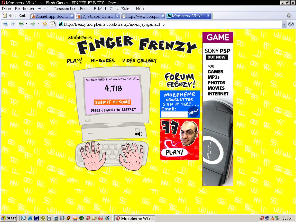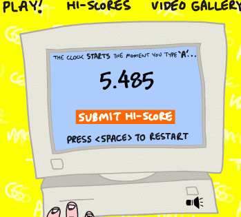 So vorerst der Höhepunkt meiner Sekunden-Hatz: 2,312 Sekunden - aber jetzt ist auch die Konzentration ziemlich weg - komme höchstens noch auf 2,6sek