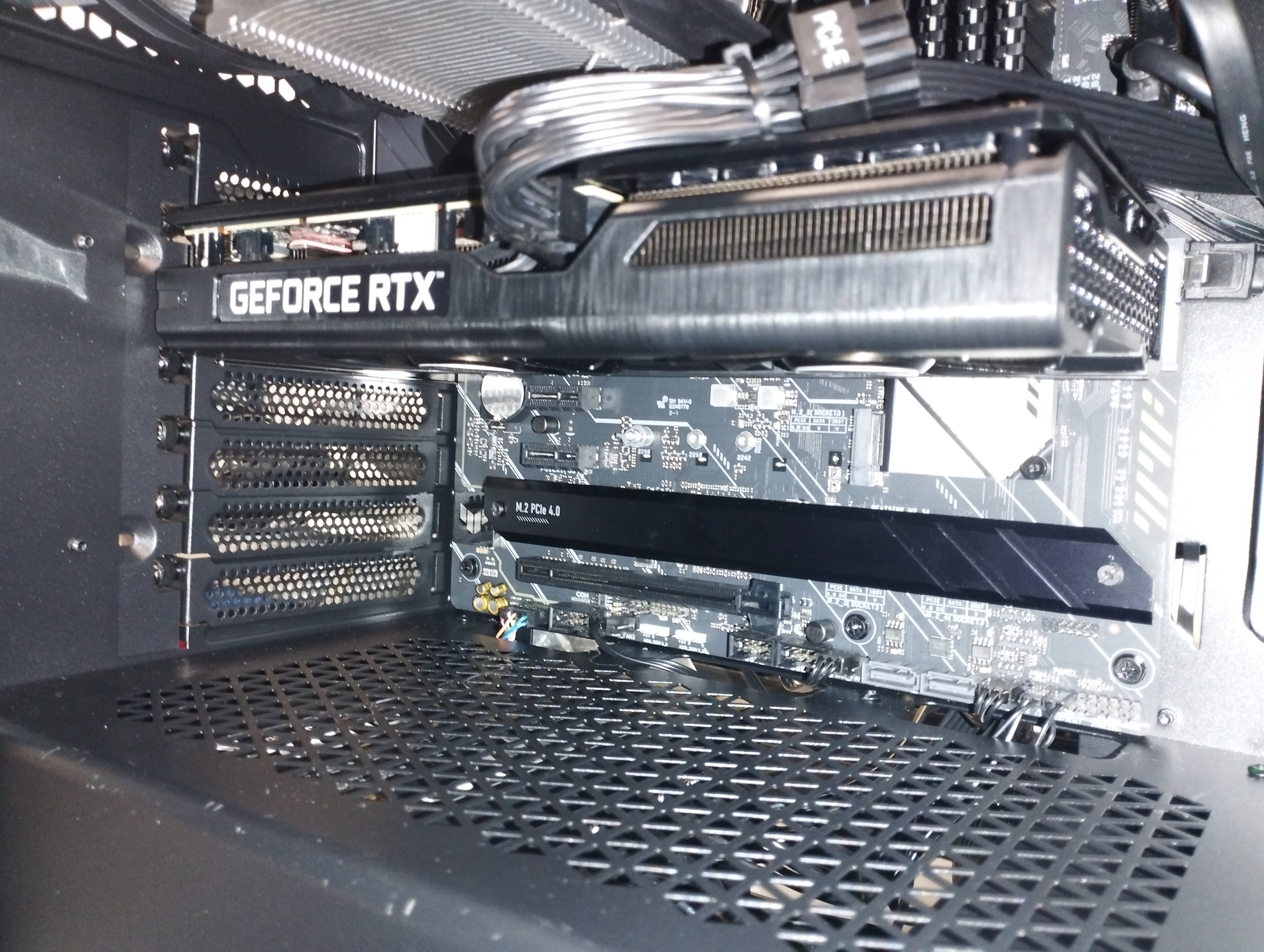 Am oberen PCI-E x16 steckt die Graka.