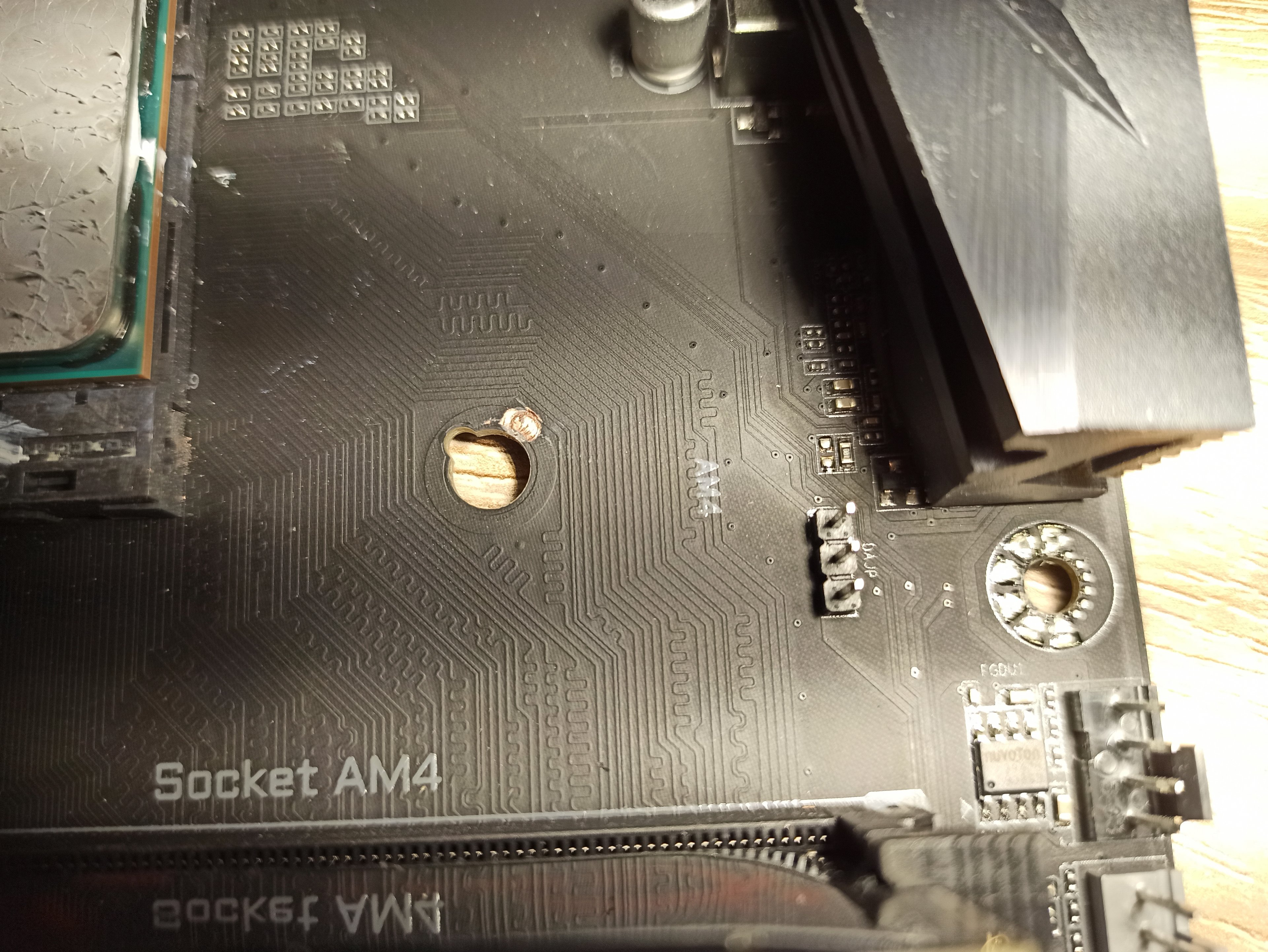 Hallo zusammen, ich habe durch eigene Doofheit gerade mein Aorus X570 Elite geschrottet. Beim Festschrauben der Aio Wasserkühlung habe ich nicht aufgepasst und bei einer Schraube neben das Gegengewinde der Backplate geschraubt. Das Resultat seht ihr im angehängten Foto. Wenn ich den PC starte laufen alle Lüfter auf Hochtouren und der Monitor sagt kein Signal. Seht Ihr versierten Bastler noch eine Möglichkeit mit Nagellack etc. das Board zu retten oder ist es einfach nur für die Tonne?