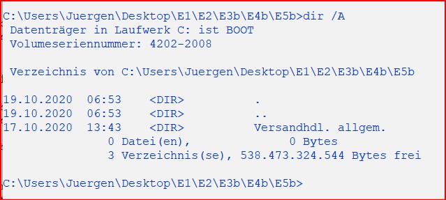 es geht um einen leeren Desktop-Ordner mit der Bezeichnung "Versandhdl. allgem." - mit dem berüchtigten Punkt am Ende. Beim Versuch ihn zu löschen wird mir angezeigt, dass er sich im Verzeichnis "C: Benutzer\Name\Desktop\Pfad\...\" nicht mehr befindet. Umbenennen geht auch nicht. Auch nicht Löschen mit irgendwelchen diversen Programmen.