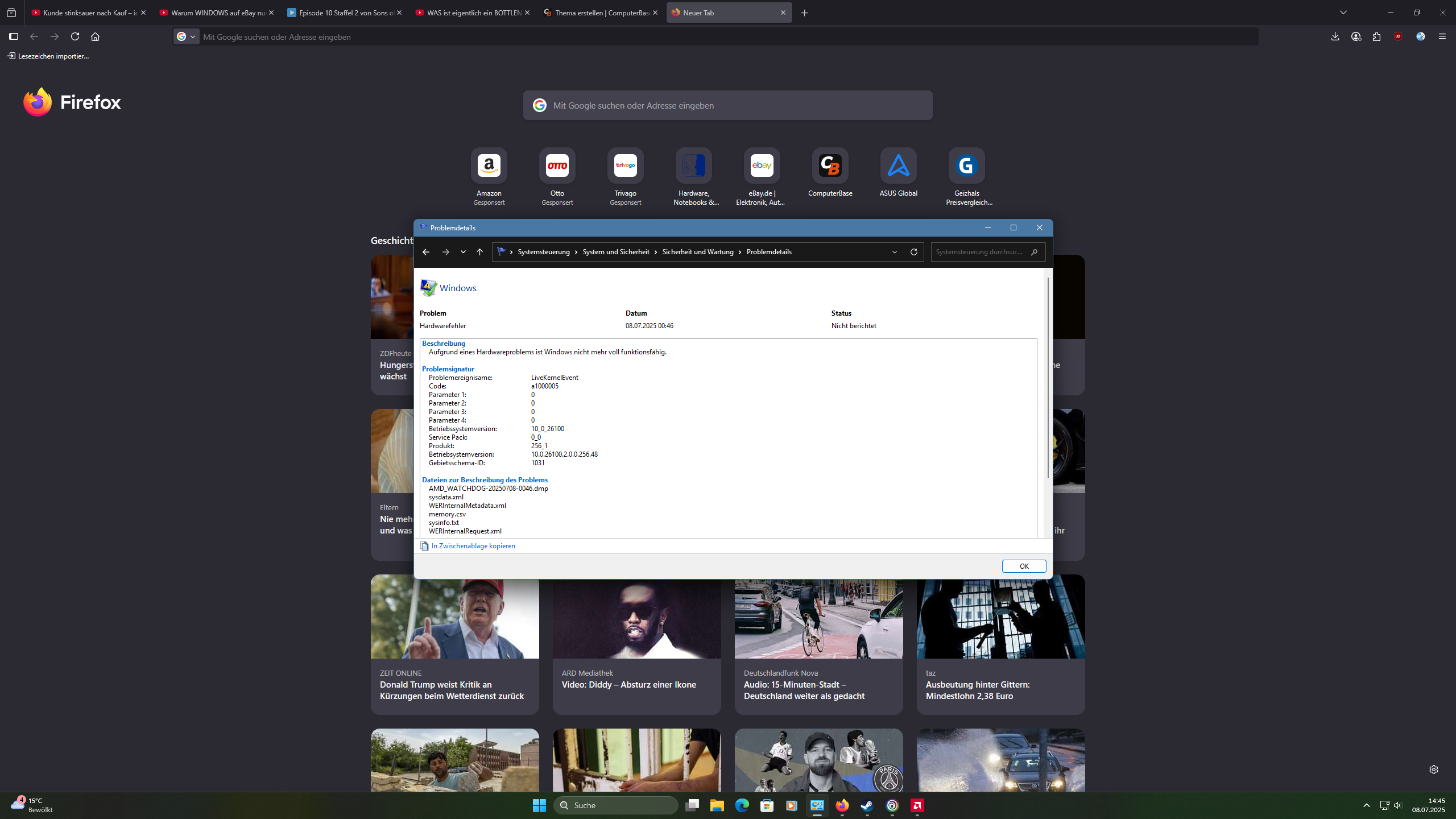 ..Ich war schon bedient, als ich das wieder gesehen habe. Und zwar, wenn ich Assassins Creed Shadows spiele und in AMD Adrenalin FMF (Fluid Motion Frames 2.1) aktiviere, haut mir Windows immer einen schwerwiegenden Hardwarefehler in die Ereignisanzeige. Das passiert aber nur, wenn ich das FMF aktiviere. Screenshot wird angehängt. Hatte ja erst ein Hardwareproblem, dass ich jetzt schon gelöst habe, mit neuem Mainboard und Netzteil. Da hatte ich dann die Hoffnung, dass das jetzt nicht mehr passiert, Fehlanzeige.