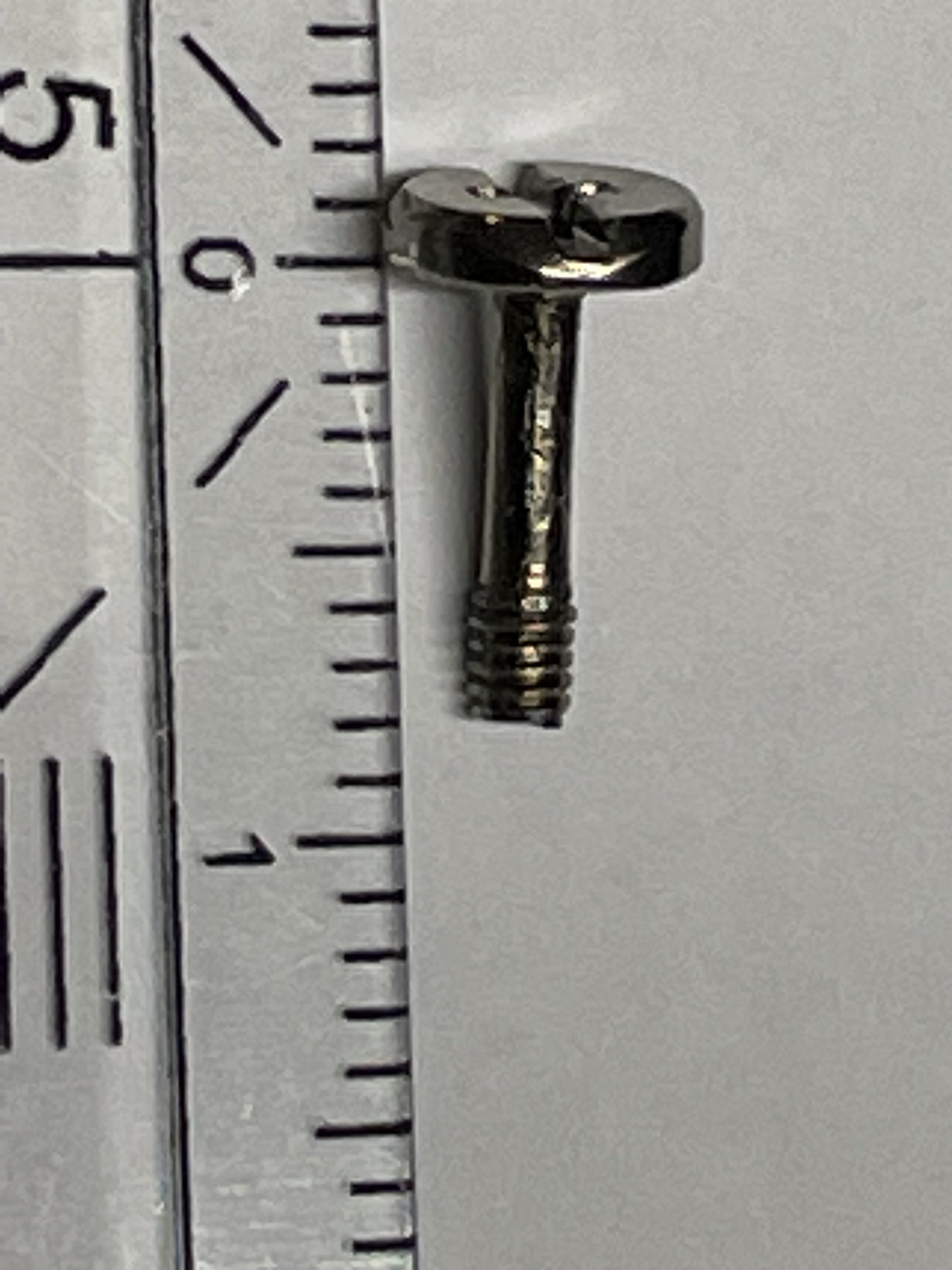 Es kann eine M2 oder M3 Schraube mit Normalgewinde sein mit 10 oder 15 mm länge.