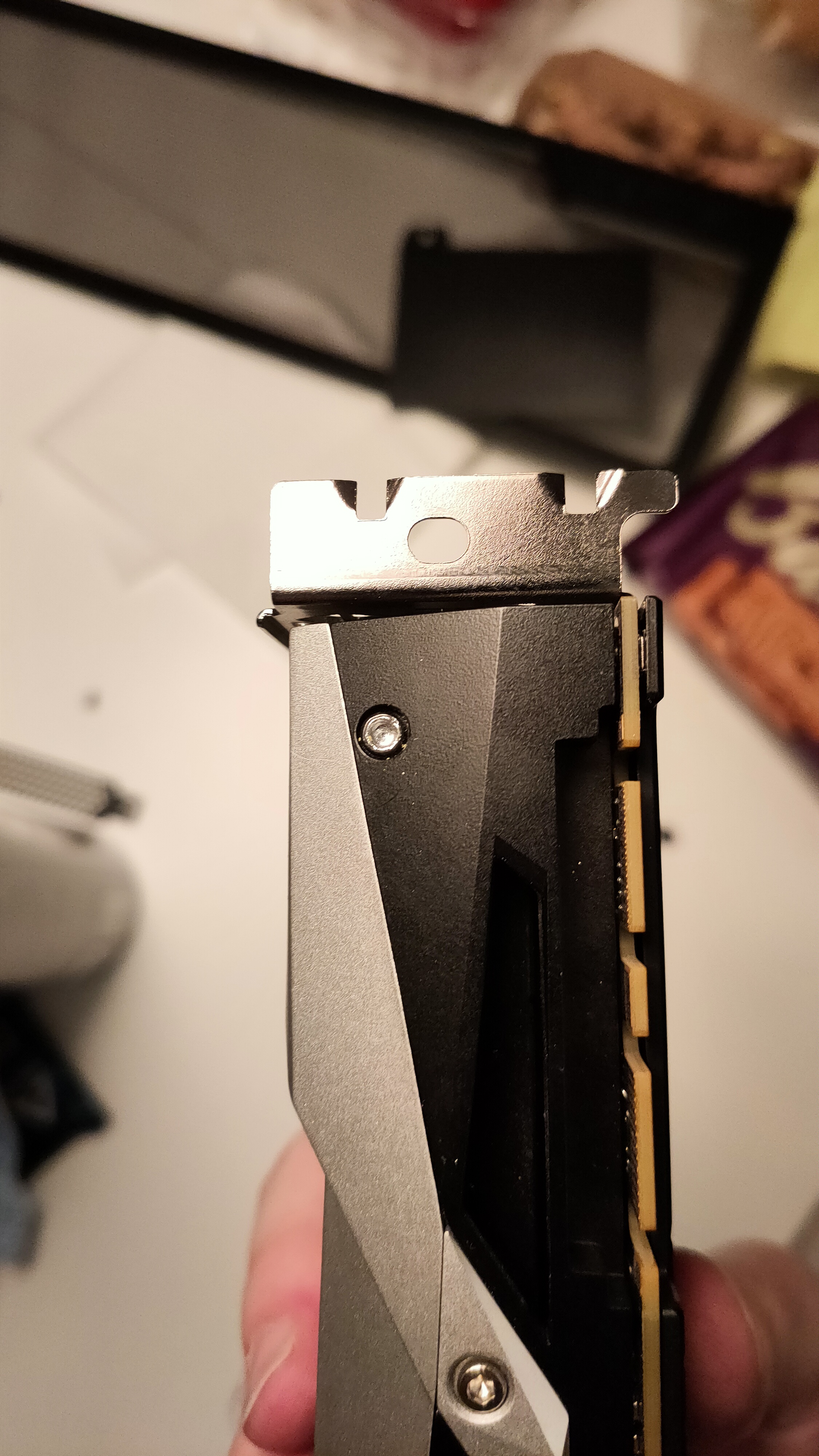 Hallo Leute, ich habe von einen Kumpel eine GTX 1070 in der Founder Edition bekommen. Da sie lange draußen rumstand und die FE Karten eh lauter sind, wollte ich auf jeden Fall die GK aufmachen, entstauben und neue Wärmeleitpaste draufschmieren. Leider ist einer der Schraubenköpfe kaputt (richtiger Schraubenzieher wurde benutzt...) gegangen und die Schraube lässt sich nicht lockern. Ich habe auch mit anderen Schraubenzieherbits versucht die Schraube rauszubekommen, aber es hat nicht geklappt. Gibt es eine Möglichkeit diese Schraube zu lockern?