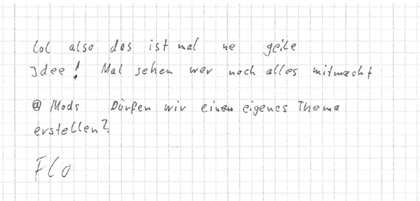 Habe heute für jmd ne kleine Notiz geschrieben und musste festellen, das meine Schrift aussieht wie beim Kleinkind, werde mich morgen mal hinsetzen und ne DINa4 Site schreiben per Hand, das kanns ja nicht sein. Scheiss Foren