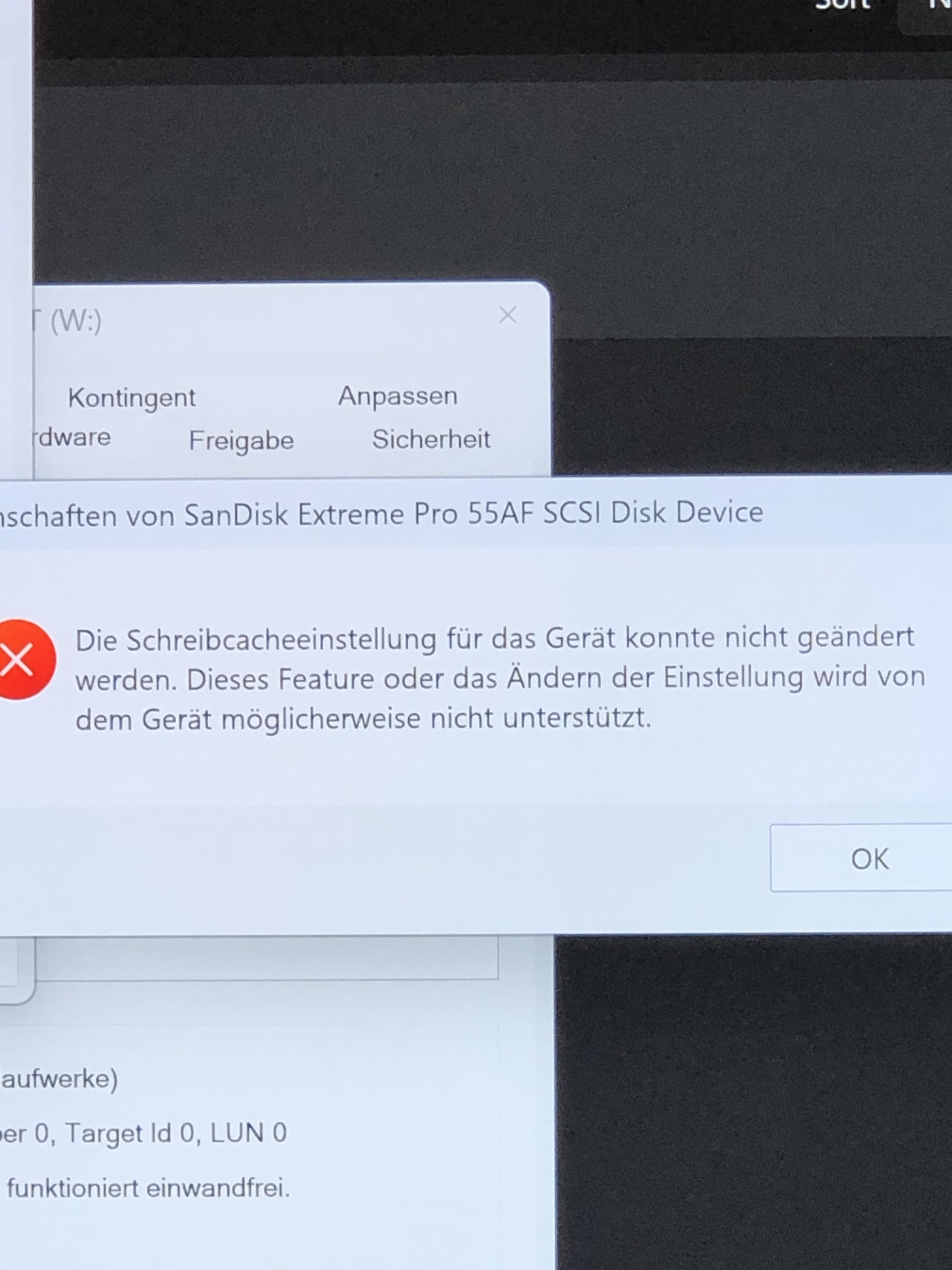 mein Anliegen betrifft dieses Mal die SanDisk Extreme Pro Portable SSD 4TB. Es handelt sich dabei um eine neuere Revison, welche wohl nicht mehr die Speicherprobleme hat, welche durch ein Firmwareupdate behoben werden sollten. Nun habe ich die SSD erst einmal formatiert in NTFS. Anschließend fiel mir die langsame Übertragungsgeschwindigkeit bei ganz einfachen Dateien unter zwei Gigabyte auf…knappe 40 MB/s… Es stellte sich heraus, dass das mitgelieferte Kabel nicht die passende Geschwindigkeit lieferte. Genutzt wird ein MSI Z690 Edge Mainboard mit Windows 11. Der hintere Port ist bei mir der USB C 3.2 Gen 2x2 Port. Mein jetziges Ersatz-USB-C Kabel ist zwar schneller als das in der Packung, aber immer noch ein ganzes Stück langsamer als die angegebenen 2000 MB/s…ca. 1288read/1397write… Nun habe ich in Foren gelesen, dass es ein Schreibcache gibt, den man aktivieren kann, damit man noch mehr Leistung rausholt. Dieses habe ich getan, weil ich leider nicht die genauen Spezifikationen meines Ersatzkabels habe und mir dadurch mehr Geschwindigkeit erhofft habe. Fazit: Keine Geschwindigkeitserhöhung durch Schreibcacheaktivierung und rückgängig kann ich diese auch nicht machen (siehe Bild im Anhang). Gibt es hier eine Möglichkeit wieder alles auf ‚Schnelle Entfernung (Standard)‘ zu setzen? Wär‘ mir jetzt letzten Endes doch lieber! Formatierung hat leider auch nicht geholfen… Für Rat und Tat bin ich euch wie immer sehr dankbar! :-)