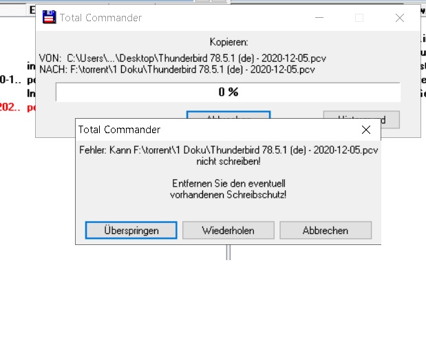 wenn ich versuche auf einer der HDDs zu schreiben kommt ein Fehler siehe Bild