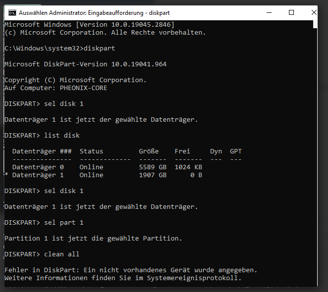 Schreibschutz von SSD nach cmd->clean immer noch da